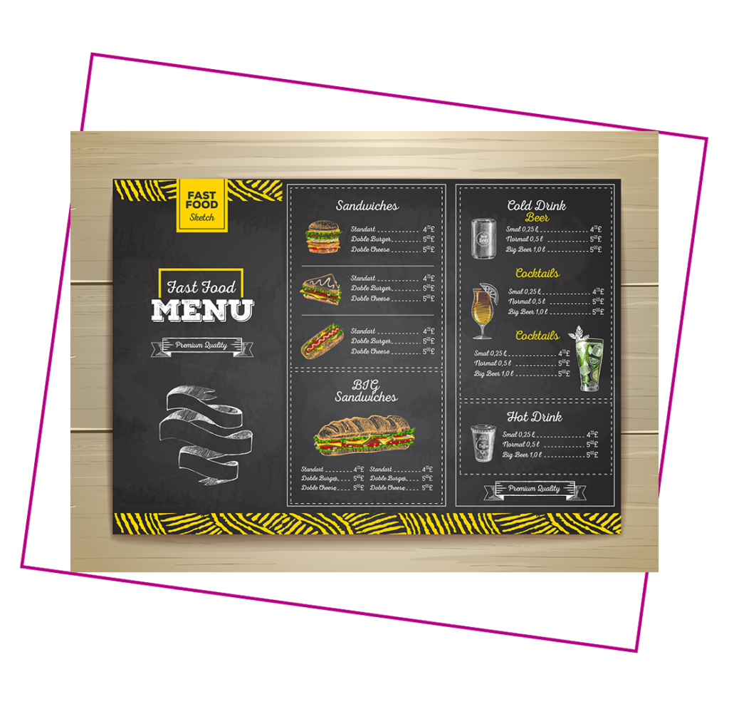 Creating a perfect outdoor sign is the first step. Our years of experience have taught us that customers pay for the whole dining experience, so we take it further by making your inside visually-appealing.
